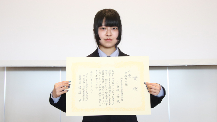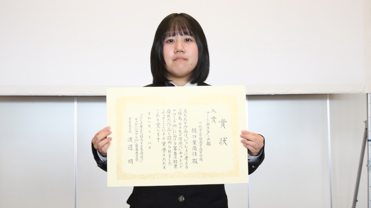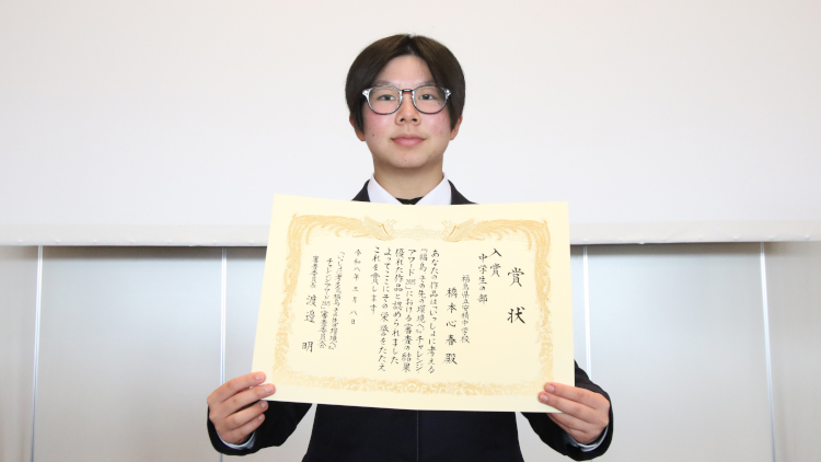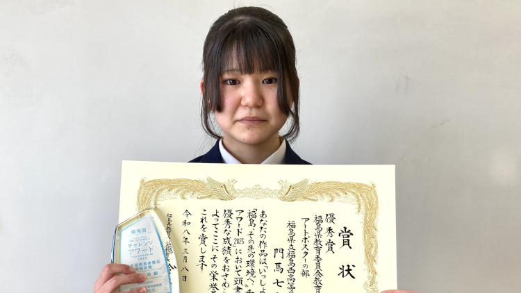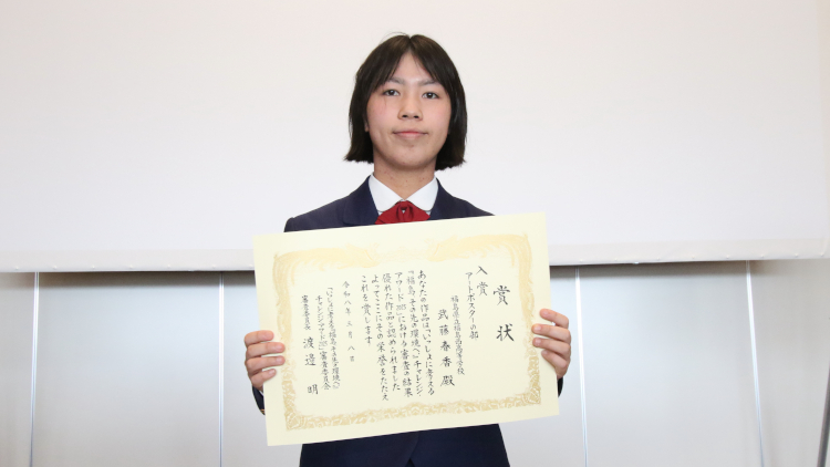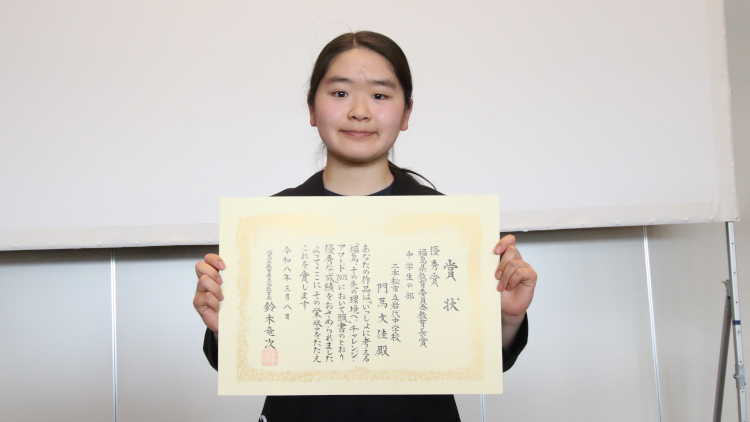 今回、このような素晴らしい賞を受賞でき、とても嬉しく思います。私は、去年の夏に浜通り地方を訪れ、復興に取り組む方々や自然に触れ、地元をより好きになりました。その時に、学校で「福島って何があるの?」と聞かれ、どう伝えるか考え、文章を書きました。これからもワークショップやツアーへ参加し、福島の良さを伝える行動を続けたいです。このたびは、本当にありがとうございました。