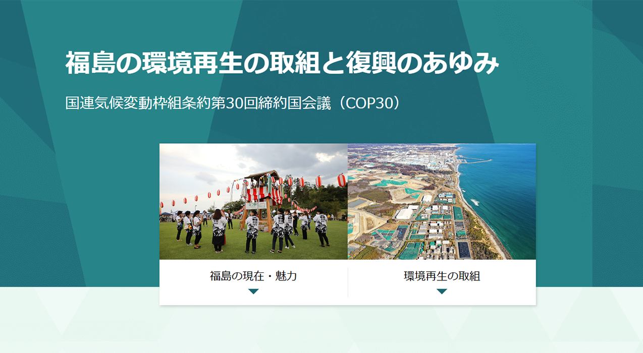第30回締結国会議(COP30)環境省では、これまで多くの皆様のご協力を得ながら、世界的にも前例のない規模と方法で除染などの環境再生事業に取り組んできました。