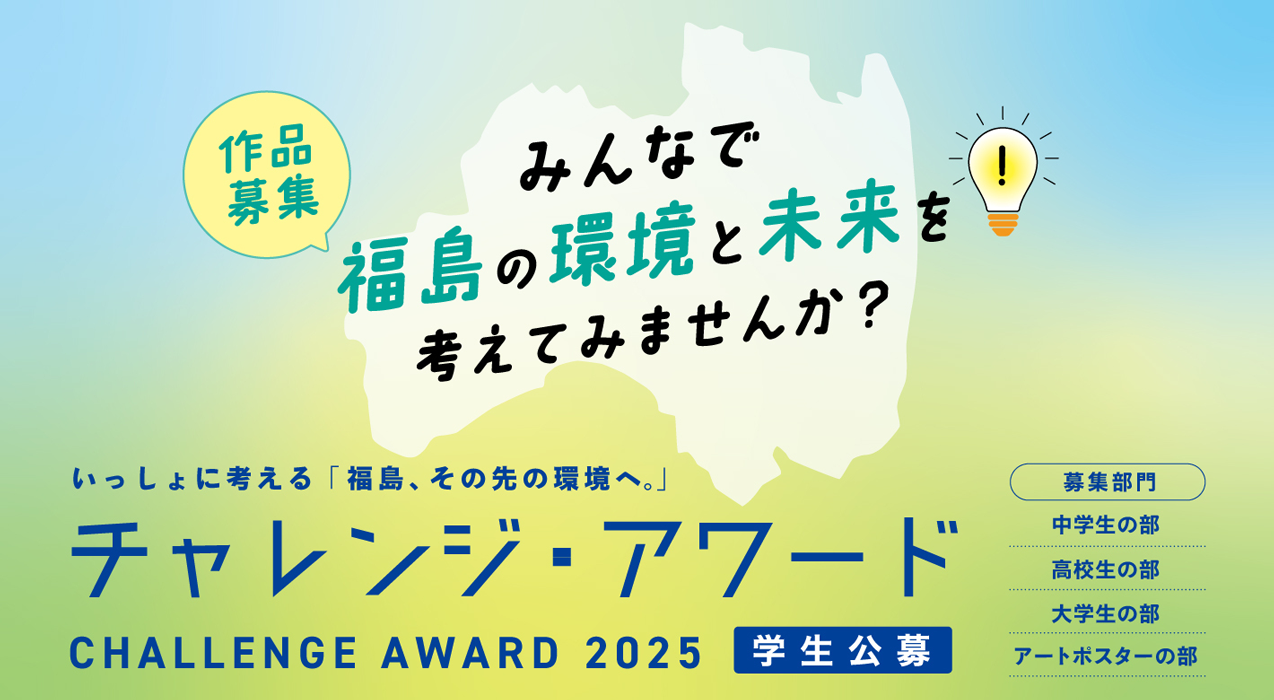 若者をはじめとする県内外の方々とともに、福島の未来志向の環境施策への理解醸成に資する取組の一環として、新たな表彰制度「いっしょに考える『福島、その先の環境へ。』チャレンジ・アワード」を創設しました。